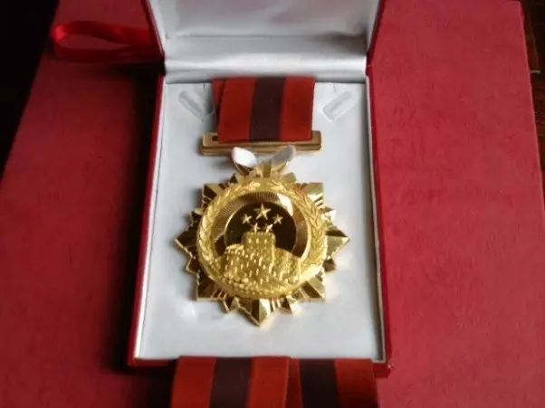 1999年9月18日,在中華人民共和國(guó)成立五十周年之際,黨中央、國(guó)務(wù)院、中央軍委隆重表彰為中國(guó)“兩彈一星”事業(yè)作出突出貢獻(xiàn)的23位科技專家,并授予他們“兩彈一星”功勛獎(jiǎng)?wù)隆V袊?guó)的“兩彈一星”,是20世紀(jì)中華民族創(chuàng)建的輝煌偉業(yè),是中華民族為之自豪的偉大成就。郭鳴在1999年參加了“兩彈一星”金質(zhì)勛章的制作工作。該獎(jiǎng)?wù)轮睆?厘米,用99.8%純金鑄造。獎(jiǎng)?wù)轮黧w圖案由五星、長(zhǎng)城、橄欖枝和光芒線組成。獎(jiǎng)?wù)轮行牡奈逍谴碇腥A人民共和國(guó);長(zhǎng)城既象征著中華民族堅(jiān)強(qiáng)不屈的精神,又象征著共和國(guó)堅(jiān)不可摧的國(guó)防;橄欖枝則表明我國(guó)研制“兩彈一星”的目的是為了維護(hù)世界和平。該獎(jiǎng)?wù)略O(shè)計(jì)端莊、章型宏偉、制作精良,是我國(guó)歷史上第一次用純金制作的勛章,更由于數(shù)量?jī)H有23枚,十分珍貴。